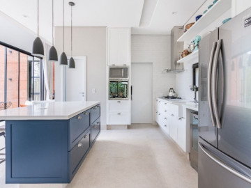 A cozinha americana, moderna e funcional, é perfeita para os amantes da gastronomia e para quem aprecia receber convidados. As 3 suítes garantem privacidade e conforto para todos os membros da família, enquanto os 4 banheiros e o lavabo garantem a comodidade no dia a dia.