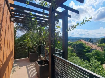 Para os momentos de lazer, a casa oferece uma área de serviço completa, com dependência de empregada e banheiro, além de churrasqueira, espaço gourmet e uma piscina privativa para relaxar e se refrescar nos dias quentes. A varanda com churrasqueira e a sacada proporcionam vistas panorâmicas deslumbrantes.
